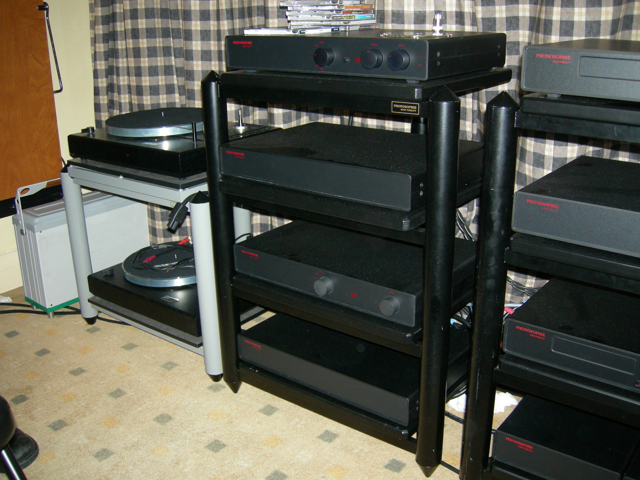 | Exhibitor's comments: The systems comprised Phonosophie source and amplification components on Phonosophie support equipment via ALR Jordan loudspeakers. Mains cables, distribution blocks, interconnects, speaker cables and accessories were all from Phonosophie. During the show we demonstrated